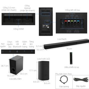 Thông qua loa Soundbar 3 kênh, loa subwoofer và các loa đứng phía sau mạnh mẽ, bạn có thể khiến phòng của mình ngập tràn những âm thanh ấn tượng như trong phim.