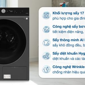 Máy sấy bơm nhiệt Samsung 9 kg DV90CGC2A0ABSV là lựa chọn lý tưởng cho các gia đình nhỏ muốn nâng tầm trải nghiệm chăm sóc quần áo với khả năng sấy khô nhanh, vận hành tiết kiệm điện và bảo vệ vải vóc hiệu quả. Sở hữu công nghệ Optimal Dry, Digital Inverter và khả năng kết nối thông minh, sản phẩm mang đến sự tiện nghi tối ưu trong từng lần sử dụng.