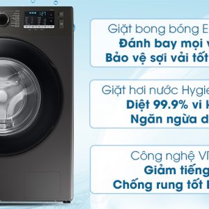 – Tính năng Hygiene Steam sử dụng hơi nước ở cuối chu trình để diệt đến 99.9% vi khuẩn, giảm dị ứng và làm mềm vải tự nhiên.