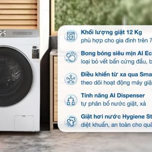 – Tính năng AI Control học thói quen người dùng, đưa ra đề xuất chương trình giặt phù hợp và ghi nhớ cài đặt yêu thích.