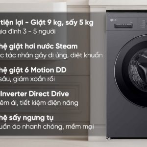 Máy giặt sấy LG Inverter giặt 9 kg – sấy 5 kg FB1209D5M Mẫu mới